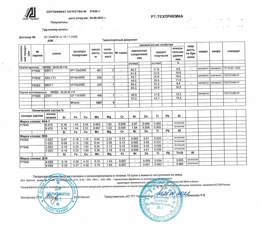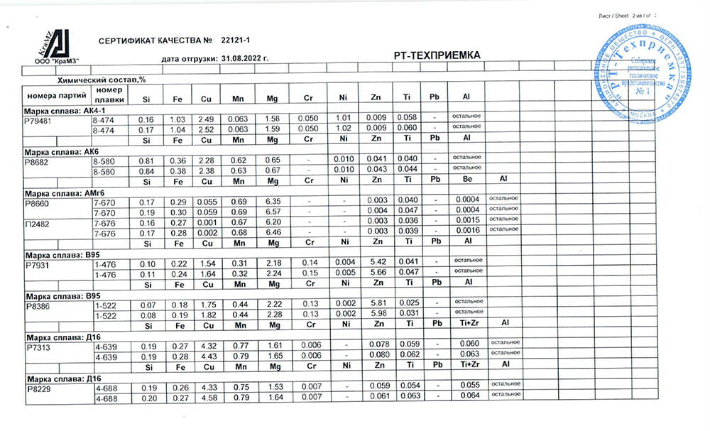 Также прутки изготавливают из технического алюминия повышенной чистоты, других марок, соответствующих по химическому составу ГОСТ 11069.